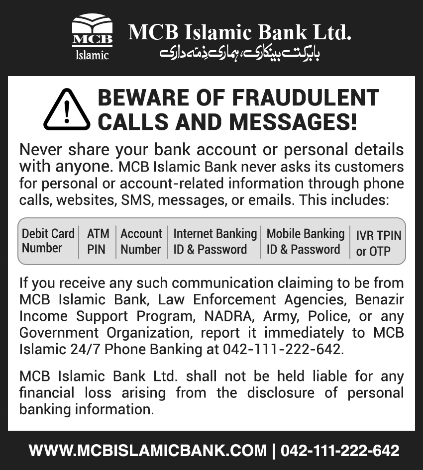 For any further information, please dial 042 111 222 624