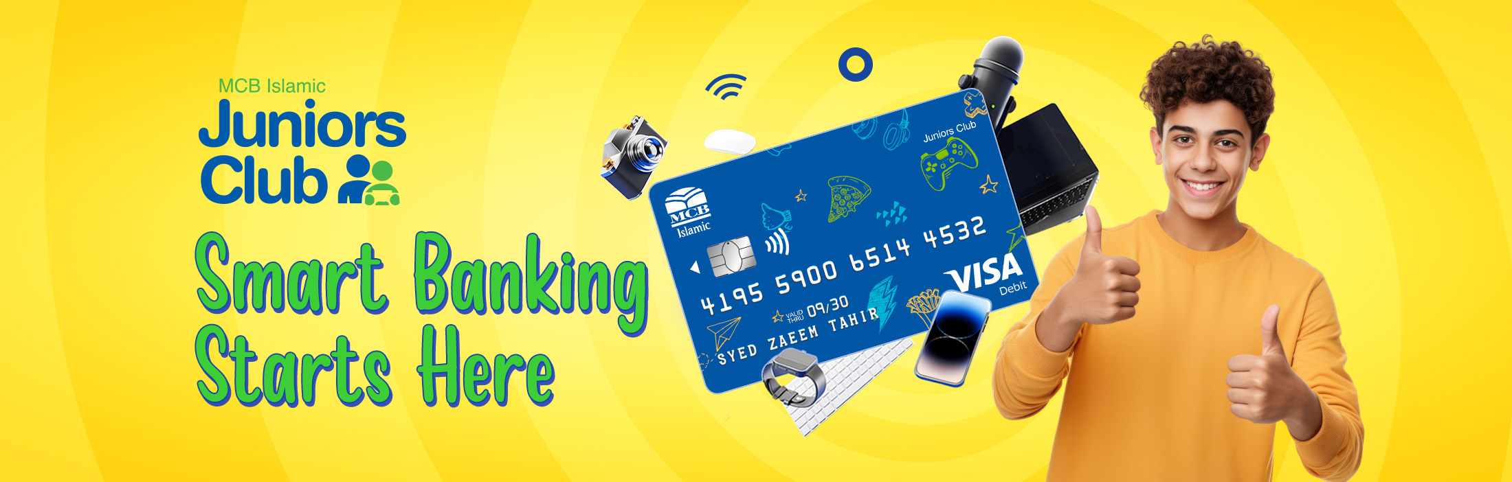 MCB Islamic Juniors Club is an account to inculcate saving in kids and making it a happy experience for them to open their first banking account. Kids can open their MCB Islamic Juniors Club and enjoy the exciting features along with saving benefits.